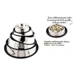 Gamelle inox décor pattes et os relief, antidérapante, 34 cm