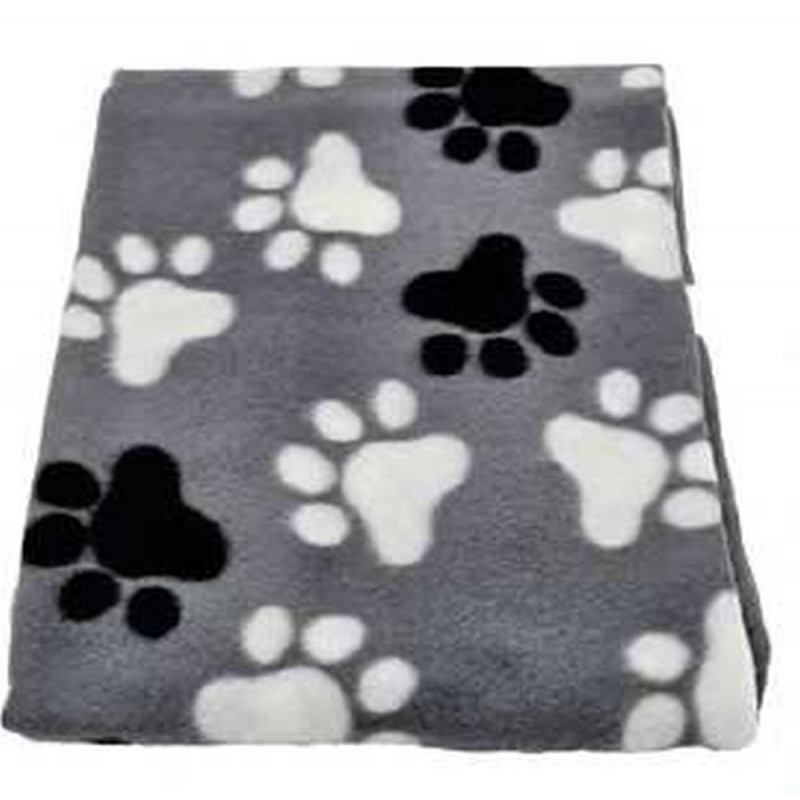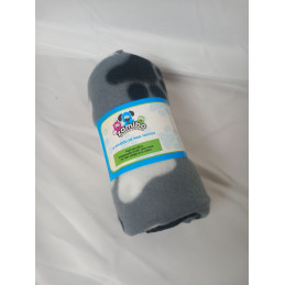 Couverture Plaid microfibre polyester 70 x 100 cm imprimé pattes - Gris Blanc