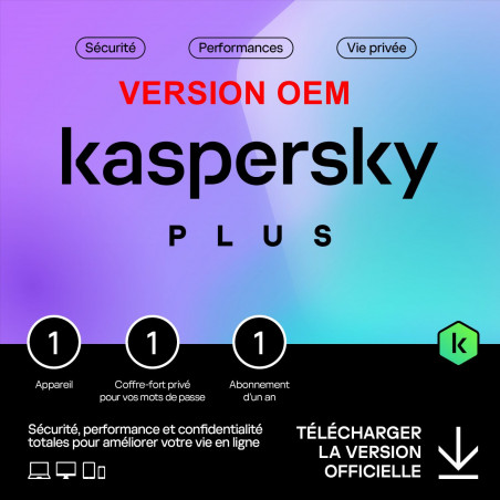 VERSION OEM Licence Officielle - pour France et DOM-TOM. Kaspersky STANDARD Multidevice - 1 Appareil 1 An PC Mac Android iOS Kaspersky Standard Bien plus qu’un antivirus. Nouvelle protection multi-appareils Bénéficiez d'une cybersécurité primée avec Kaspersky Standard. - Sécurité avancée: anti-phishing et pare-feu inclus. - Fonctionnement...