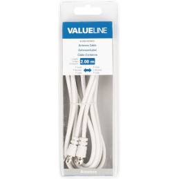 Câble coaxial d’antenne 2 m Connecteur type F Male - connecteur type F mâle - blanc - Valueline