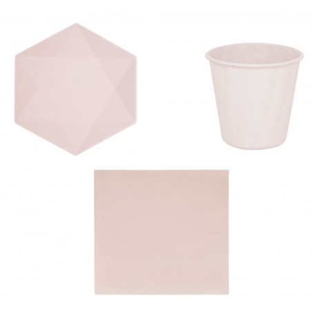Lot Vert Decor VIOLET LILAS composé de : - 8 assiettes hexagonales de 26.1 x 22.6cm,- 8 gobelets en papier 310ml,- 20 serviettes en papier 33 x 33cm