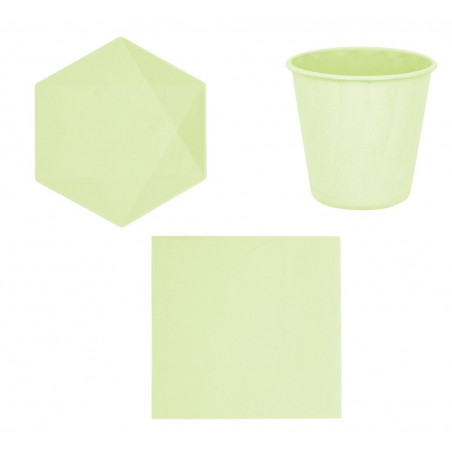 Lot Vert Decor JAUNE composé de : - 8 assiettes hexagonales de 26.1 x 22.6cm,- 8 gobelets en papier 310ml,- 20 serviettes en papier 33 x 33cm