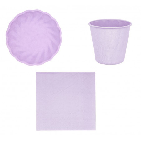 Lot Princesse d'un jour composé de : - 8 assiettes en papier de 23cm- 8 gobelet en papier- 16 serviettes en papier