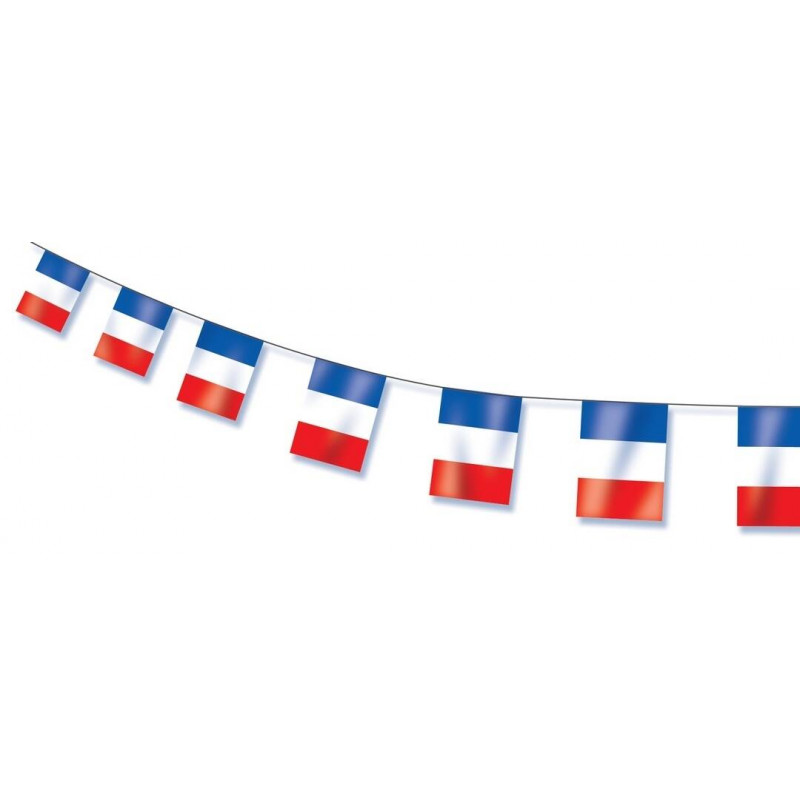 Guirlande 5m Drapeaux plastique Bleu Blanc Rouge - Parfait pour les supporters des équipes de France
