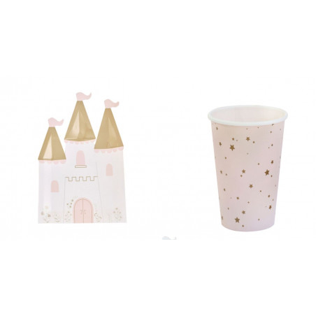 Lot Princesse d'un jour composé de : - 8 assiettes en papier de 23cm- 8 gobelet en papier- 16 serviettes en papier