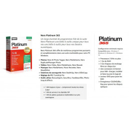 La suite NERO Platinum 365 est une licence pour 1 an qui vous permet d'accéder à 7 applications pour gérer vos médias.