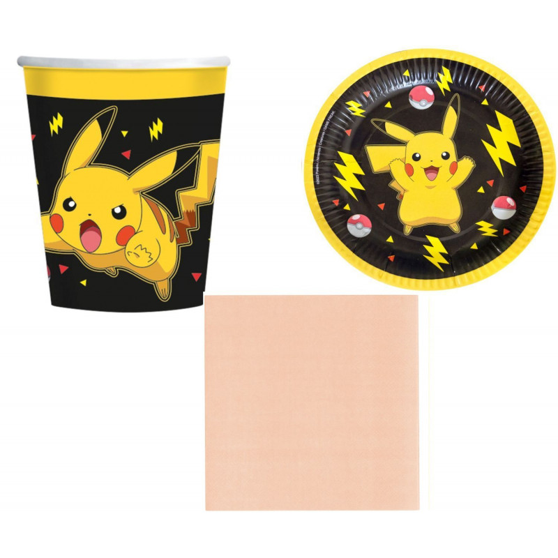 Lot POKEMON 4 JAUNE composé de : - 8 assiettes en papier de 23cm,- 20 serviettes en papier jaune, - 8 invitations + enveloppes,