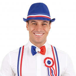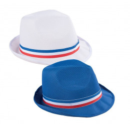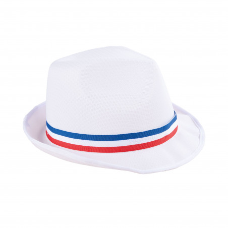 Chapeau Borsalino BLANC - Adulte mixte - Ruban Bleu Blanc Rouge - Parfait pour les supporters des équipes de France