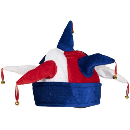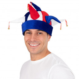 Chapeau de Bouffon FRANCE Bleu Blanc Rouge avec petites clochettes - Parfait pour les supporters des équipes de France Article pour adulte.Tenir hors de la portée des enfants.
